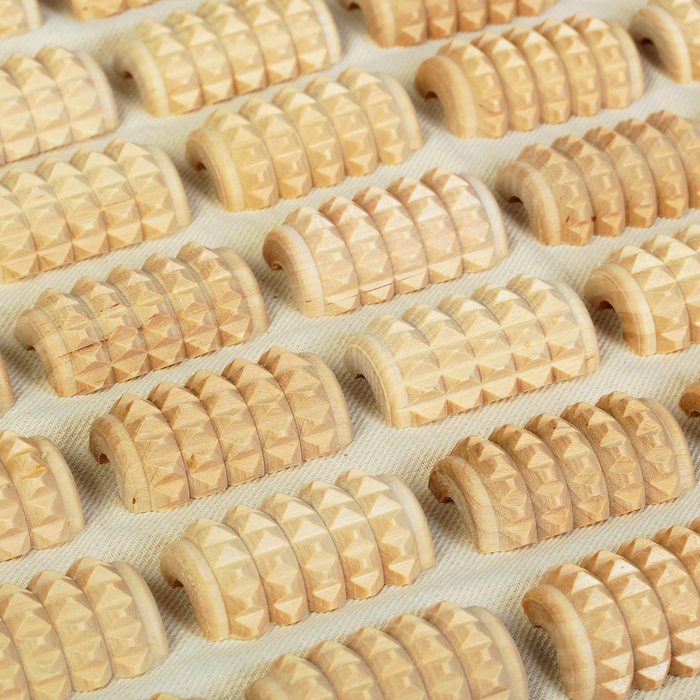 Роликовый массажёр разомнёт и разогреет мышцы, улучшит кровообращение и приведёт кожу в тонус. Дерево приятно касается тела, а инструмент удобно лежит в руке и прослужит вам очень долго.