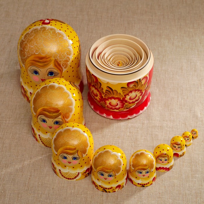 Матрёшка «Ажурная», жёлтый платок, 10 кукольная, 26 см
