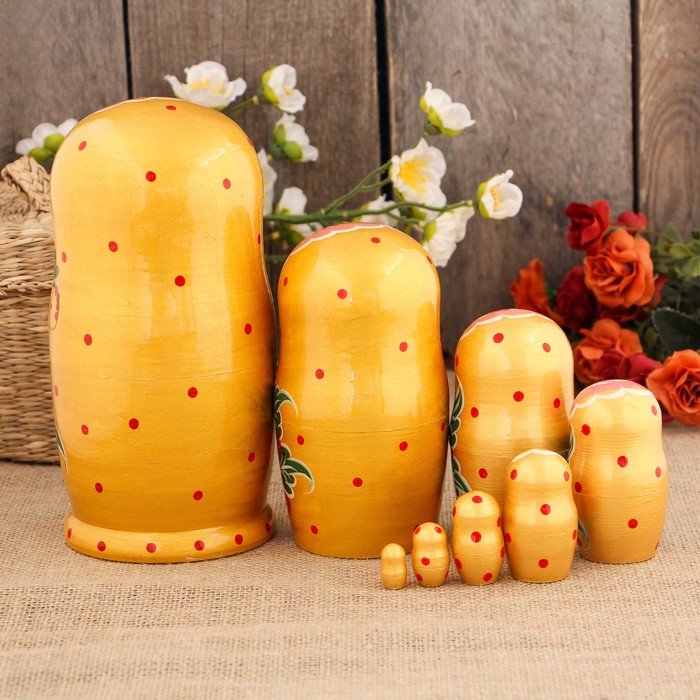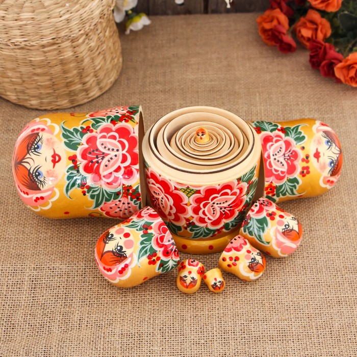Матрёшка «Цветы», жёлтый платок, 8 кукольная, 19 см