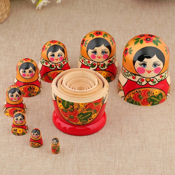 Матрёшка «Земляничка», жёлтый платок, 8 кукольная, высшая категория
