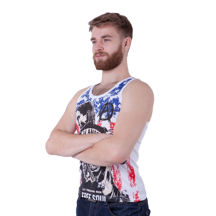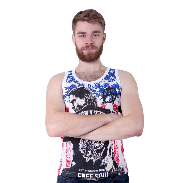 Майка мужская, цвет белый, размер M, стрейч (арт. Е21) — выбор стильных людей. Вещь изготовлена из качественных и безопасных материалов, а над дизайном работала команда настоящих профессионалов.