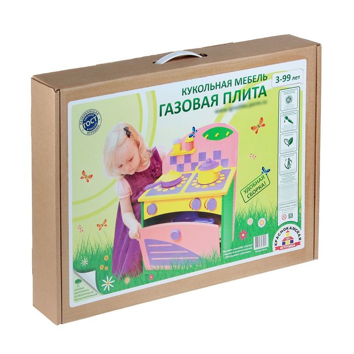 Газовая плита станет отличным дополнением для интерьера кукольной кухни. Малышка испечёт пирог для чаепития или сварит борщ для игрушечных гостей.