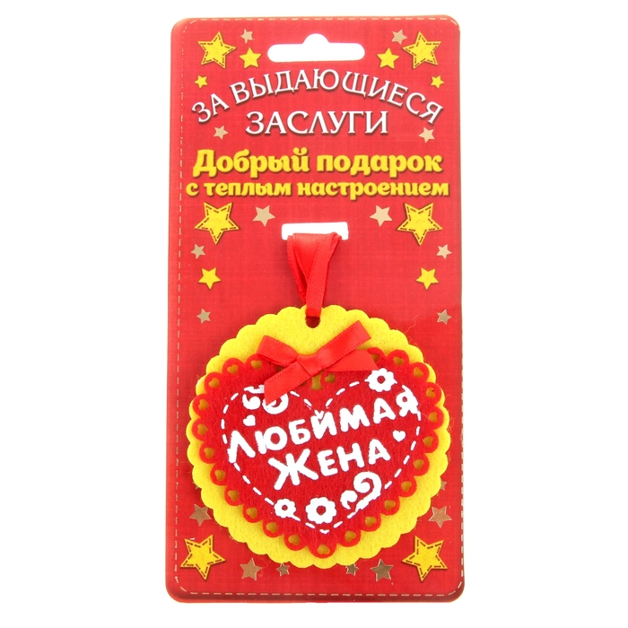 Медаль "Любимая жена" сделана из фетра и упакована на картонной подложке с поздравлением, идет в комплекте с лентой.
