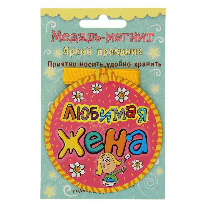 Медаль на магните "Любимая жена" – веселая и оригинальная вещица, которая понравится любому. Это отличное приобретение для вас и замечательный подарок для ваших близких, друзей и знакомых. Идет в комплекте с лентой.