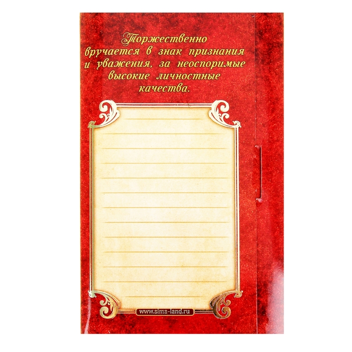 Создана формула идеального поздравления: классическая форма и праздничное содержание. Оригинальная медаль – отличная награда для самых достойных представителей своего времени. Эксклюзивный сувенир станет достойным украшением вечера и поможет создать незабываемое поздравление!