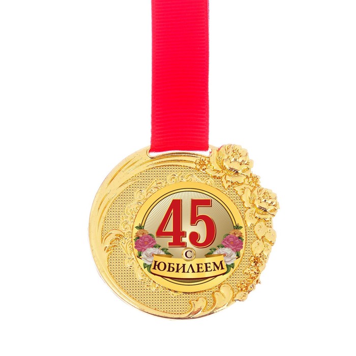 Медаль "С Юбилеем 45" в бархатной коробке, диам 5 см