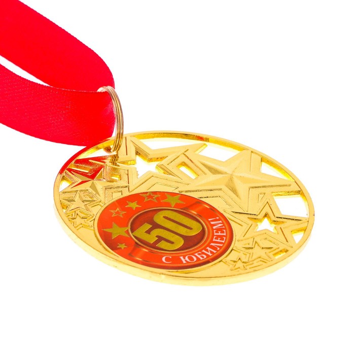 Медаль со звездами "С юбилеем 50 лет!", барх. подложка, диам. 5 см