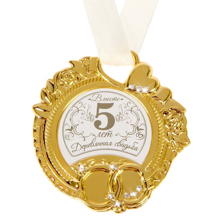 Хотите ярко и необычно поздравить близких людей с годовщиной такого важного дня? Изделие подчеркнёт всю торжественность этого события. Медаль эксклюзивной формы изготовлена из металла под золото и украшена великолепными сияющими стразами. Она преподносится на нежной оригинальной резной открытке с золотым тиснением. Внутри написаны красивые искренние поздравления!