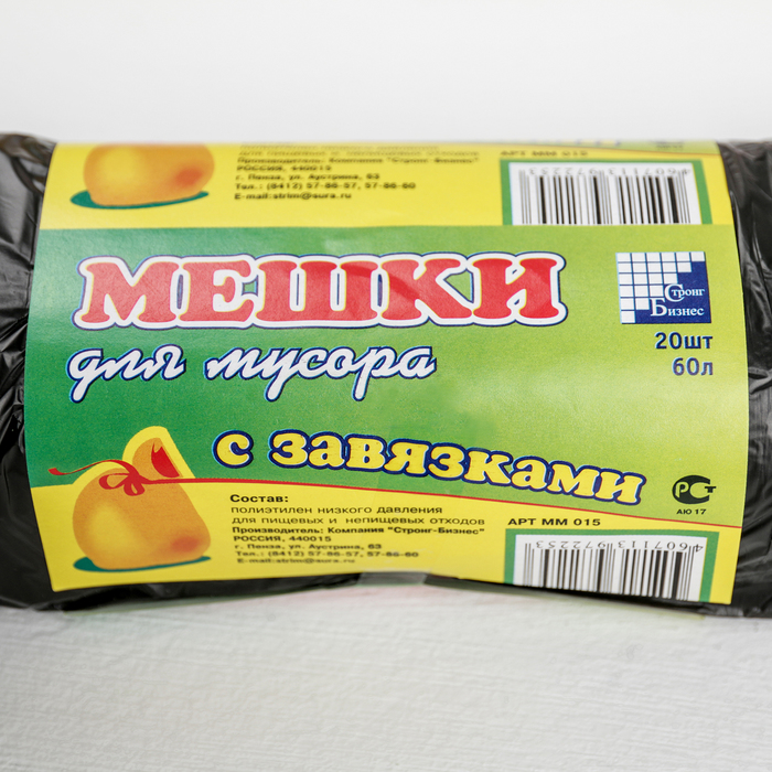 Мешки для мусора с завязками 60 л, толщина 14 мкм, в рулоне 20 шт