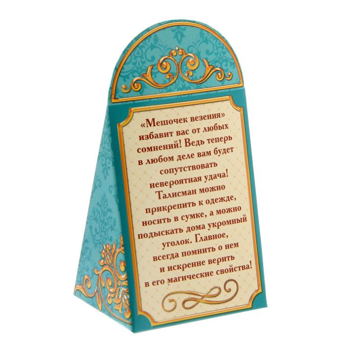 Мешочек упакован в оригинальную коробочку с пожеланием.