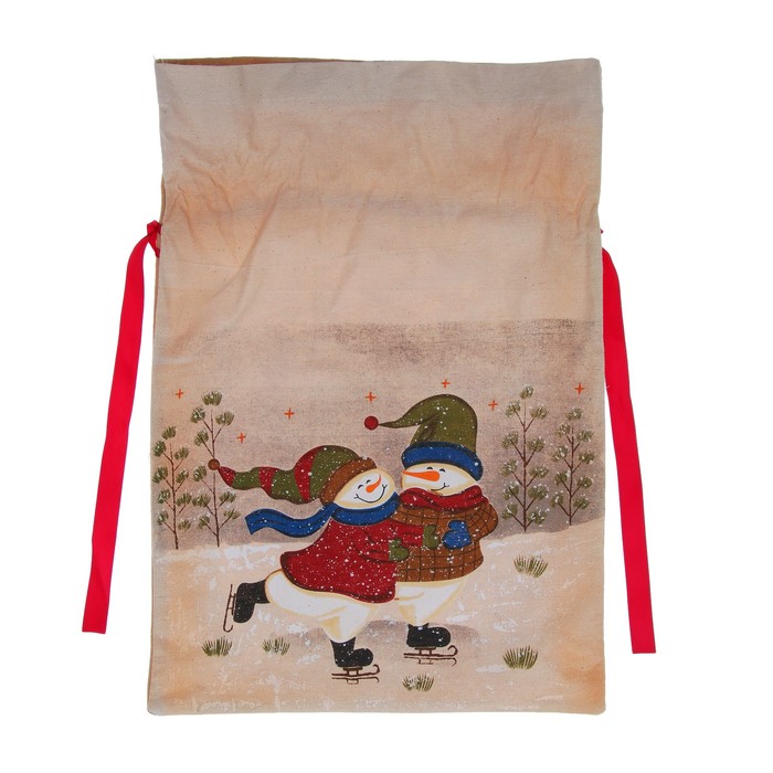 Мешок для подарков "На катке" снеговики, на завязках