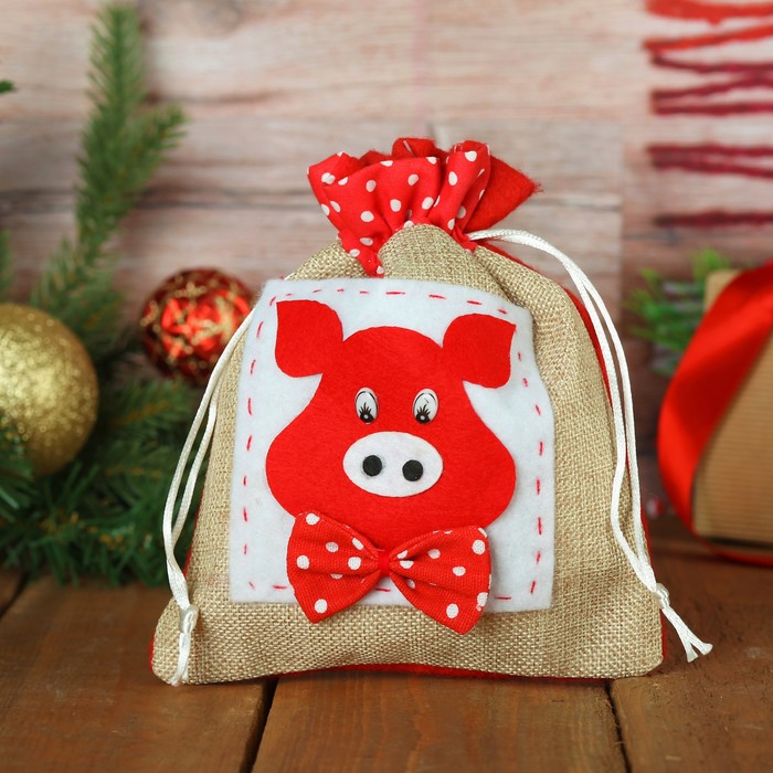 Мешок "Хрюша с бабочкой" на завязках, цвета МИКС, размер 16 х 20 см