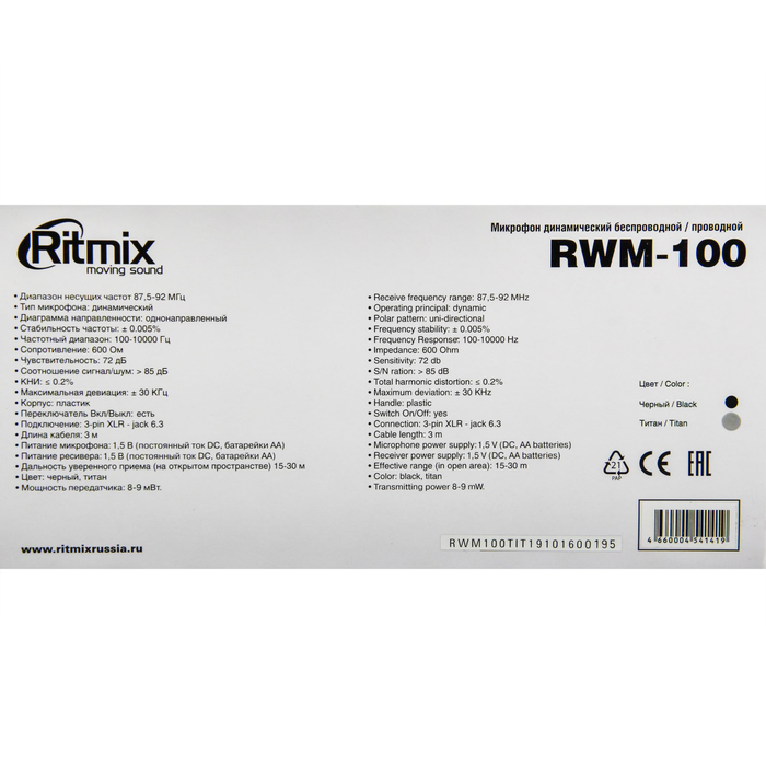 Микрофон RITMIX RWM-100 Titan, 100-10000 Гц, динамический
