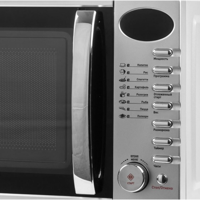 Микроволновая печь Vekta TS720ATS, 20 л, 700 Вт, дисплей, ручка, 8 программ, серебристая