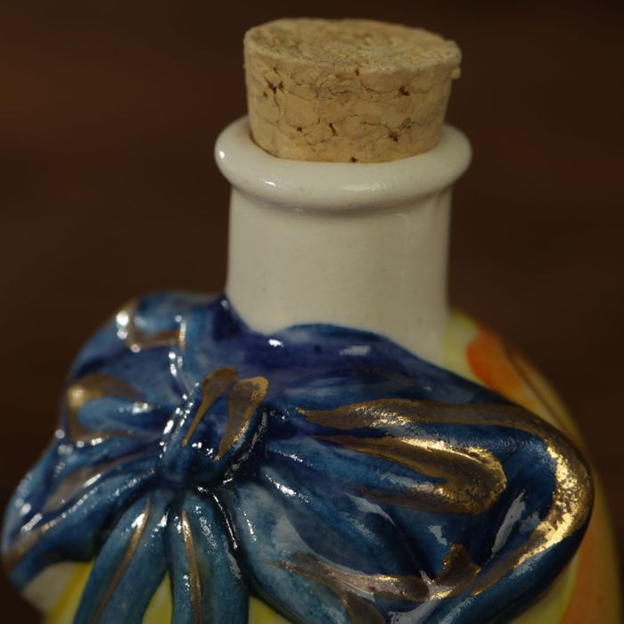 Оригинальный фарфоровый мини-штоф пригодится для хранения горячительного напитка. Кроме того, он будет замечательно смотреться в домашнем баре или буфете за стеклом с другой посудой.