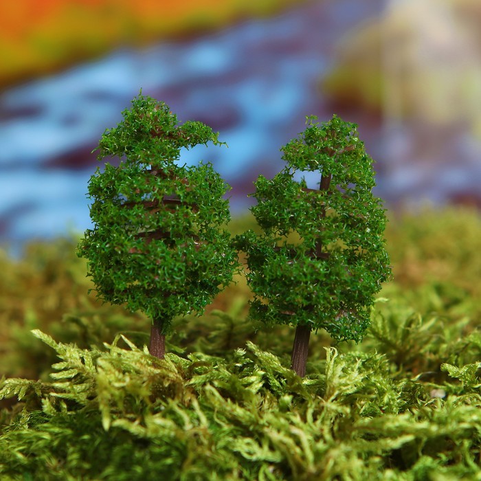 Миниатюра кукольная, набор 2 шт "Дерево" размер 1 шт 2,5*2,5*7 см, цвет светло-зеленый