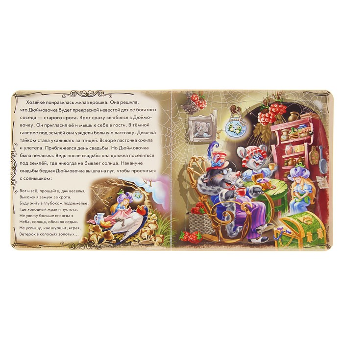 Мир сказки «Дюймовочка» — отличный вариант для тех родителей, которые привыкли окружать своего малыша только лучшими и качественными вещами. За такой книжкой ваш ребёнок проведёт время с пользой и удовольствием, узнает много нового и интересного.