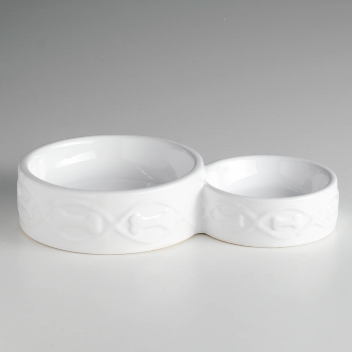Миска керамическая "Волна" двойная, 150/350 мл, белая