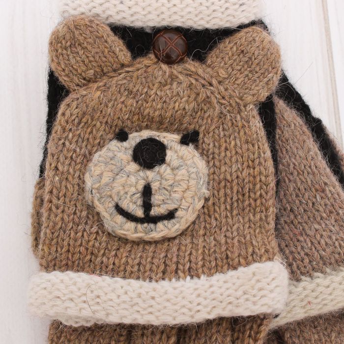 Митенки шерстяные детские "Мишутка", размер 18 (р-р произв. 9), цвет чёрный/бежевый