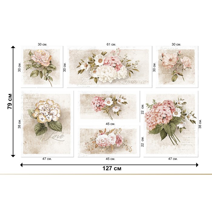 Модульная картина "Букетики" 127*79 см (2-30х30; 2-38х47; 2-45х22; 1-61х30)