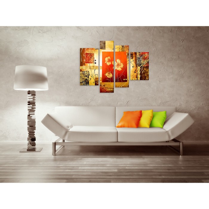 Каждому хозяину периодически приходит мысль обновить свою квартиру, сделать ремонт, перестановку или кардинально поменять внешний вид каждой комнаты. Модульная картина "Цветы в абстракции" 90*67 см — привлекательная деталь, которая поможет воплотить вашу интерьерную идею, создать неповторимую атмосферу в вашем доме. Окружите себя приятными мелочами, пусть они радуют глаз и дарят гармонию.