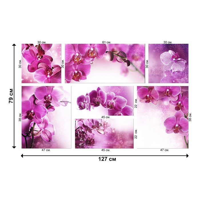 Модульная картина "Фиолетовые орхидеи" 127*79 см (2-30х30; 2-38х47; 2-45х22; 1-61х30)