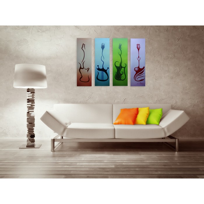 Каждому хозяину периодически приходит мысль обновить свою квартиру, сделать ремонт, перестановку или кардинально поменять внешний вид каждой комнаты. Модульная картина "Гитары" 120*92 см — привлекательная деталь, которая поможет воплотить вашу интерьерную идею, создать неповторимую атмосферу в вашем доме. Окружите себя приятными мелочами, пусть они радуют глаз и дарят гармонию.