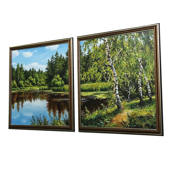 Модульная картина "Лесное озерцо" (36х36-2 шт) 36х72 см