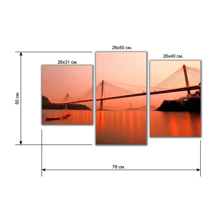 Модульная картина на подрамнике "Мосты", 26×50 см, 26×40 см, 26×32 см, 80×50 см