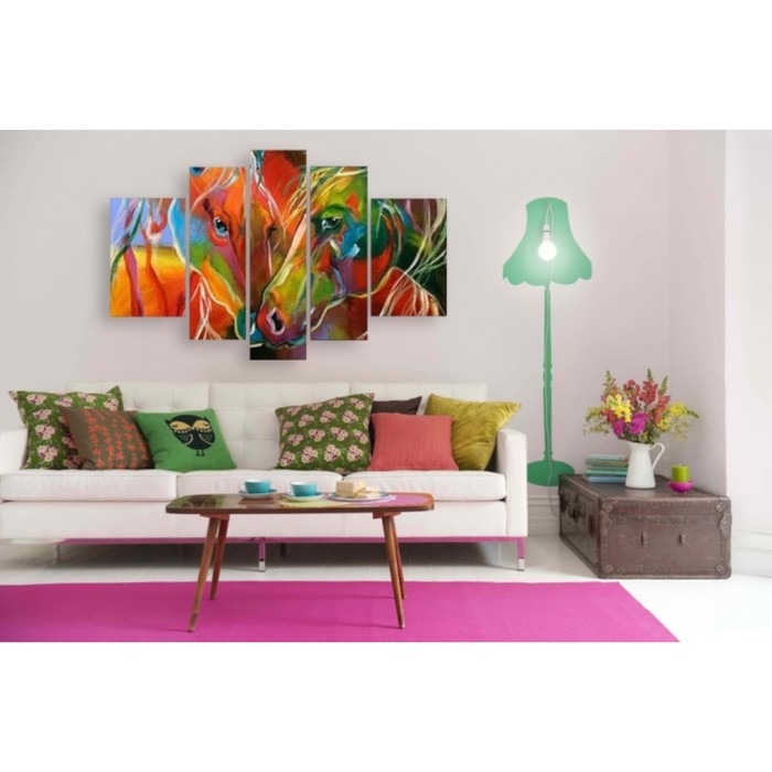 Модульная картина на стекле "Цветные лошади" 90*45 см