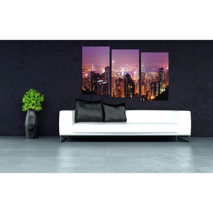 Модульная картина на стекле "Ночной Гонконг" 90*55 см