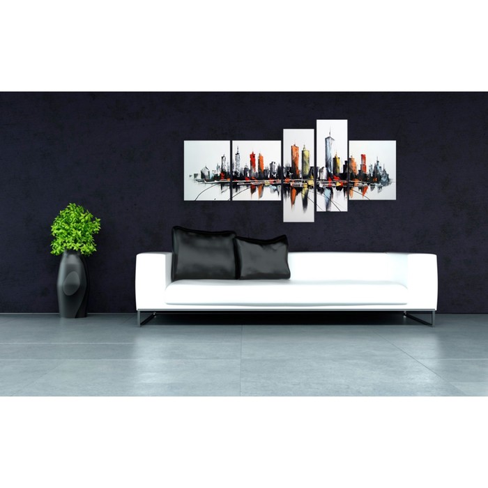 Модульная картина на стекле "Рассвет в городе" 90*43 см