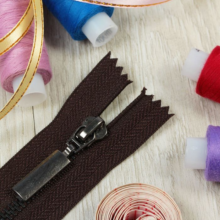 Молния №5, неразъёмная, 18см, цвет тёмно-коричневый