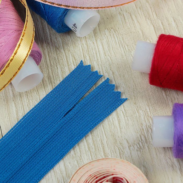 Зубчики потайной молнии скрыты тесьмой, вся конструкция легко прячется в шов изделия. Такие застёжки лучше использовать на вещах из тонкой ткани: платьях, брюках, юбках, блузках.