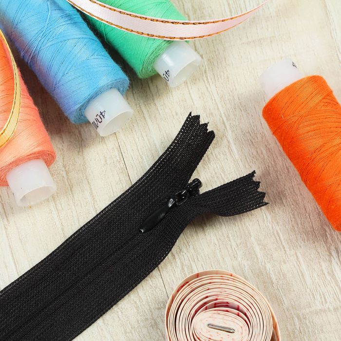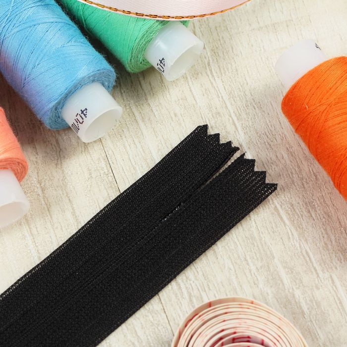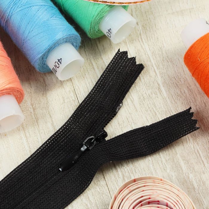 Зубчики потайной молнии скрыты тесьмой, вся конструкция легко прячется в шов изделия. Такие застёжки лучше использовать на вещах из тонкой ткани: платьях, брюках, юбках, блузках.