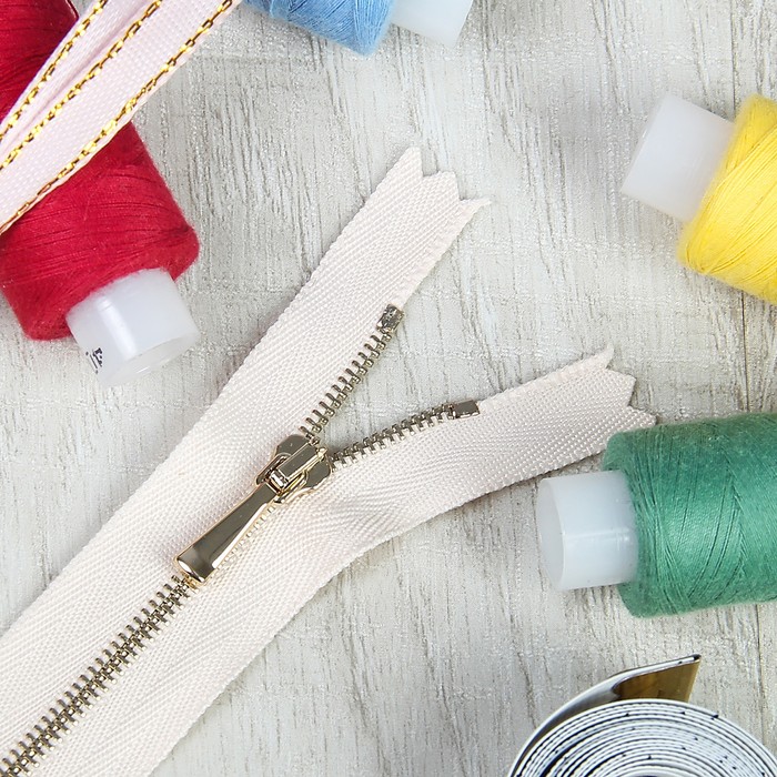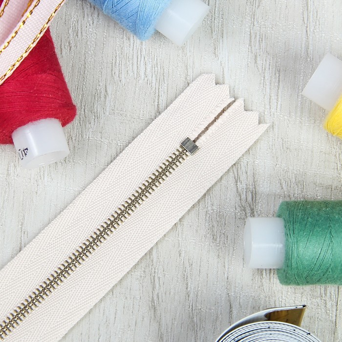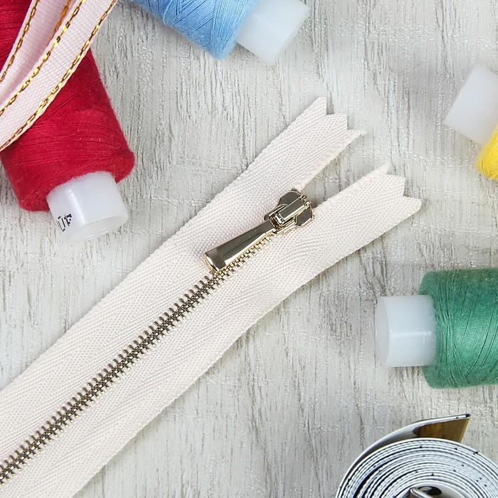 Молния ZZD, №1, металлическая, неразъёмная, 20см, цвет бежевый