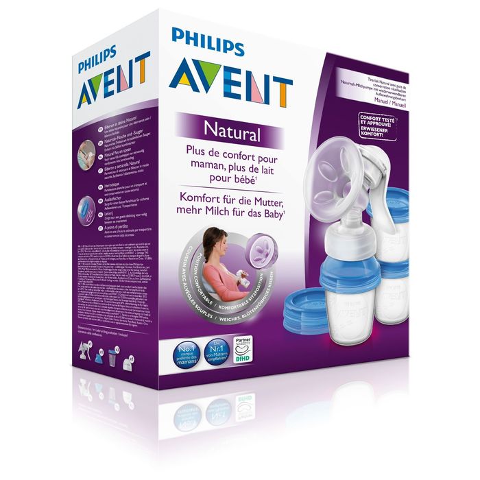 Молокоотсос ручной Natural, в комплекте контейнеры для хранения грудного молока, 3 шт., соска силиконовая, 1 шт.