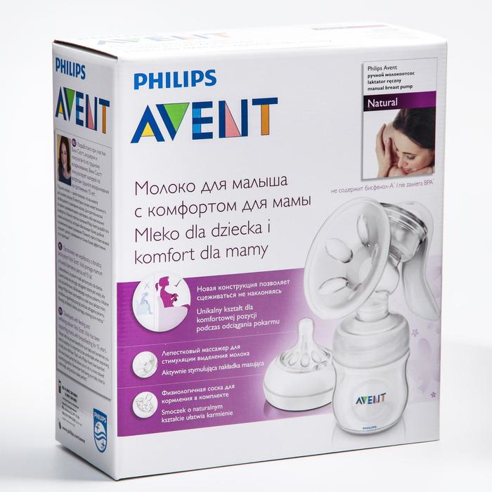 Молокоотсос ручной серии Natural + 2 комплекта прокладок для груди