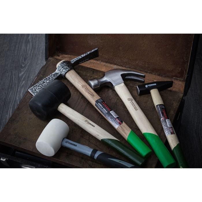 Слесарный молоток TUNDRA — незаменимый помощник в плотницком деле, строительстве, а также в быту. Ударная головка состоит из двух частей. Боёк с плоской ударной поверхностью используется для забивания гвоздей или выстукивания деформированных металлических предметов, а биток — для демонтажных работ. Деревянная рукоять удобно лежит в руке во время эксплуатации.
