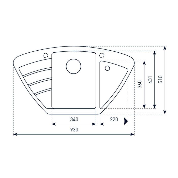 Искусственный камень, из которого изготовлена мойка, — это 80 % натурального камня и 20 % связующих полимеров.