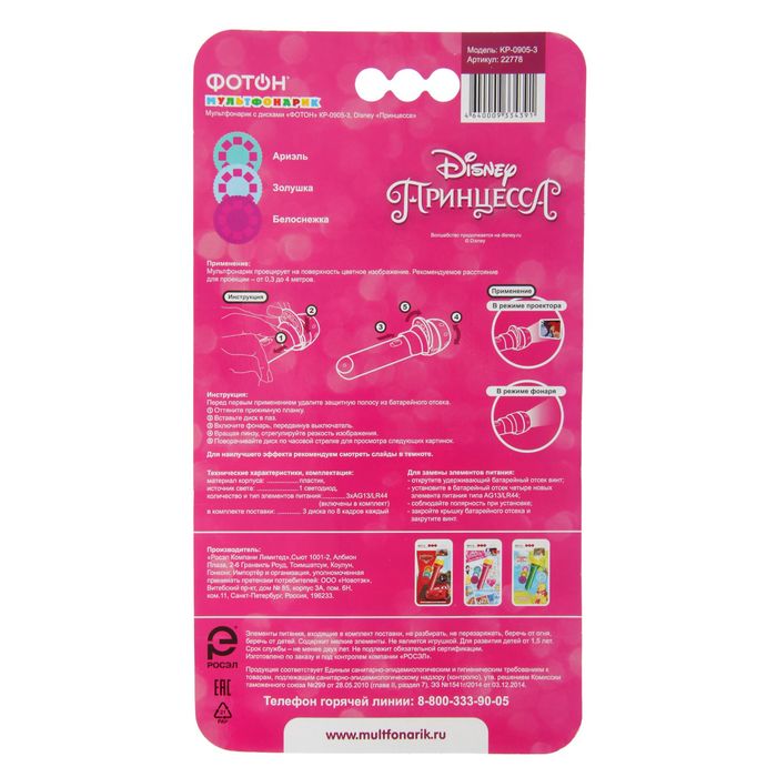 Мультфонарик с дисками "ФОТОН", Disney "Принцесса"