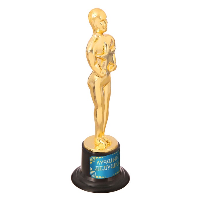 Мужская фигура. Оскар мини со звездой "Лучший дедушка" — отличный сувенир, который ярко заявит о себе на любом мероприятии! Получатель обязательно обрадуется такой стильной награде. «Оскар» выполнен из пластика золотого цвета. Номинация, за которую он вручается, указана на чёрной подставке на металлизированной бумаге. Чтобы вручение награды было по-настоящему торжественным, мы разработали в дополнение к «Оскару» прекрасную упаковку — пластиковую коробу с подложкой из золотой бумаги и добрыми словами на обороте.