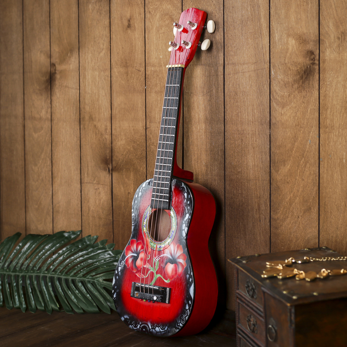 Музыкальный инструмент гитара-укулеле "Цветы" 55х20х6 см