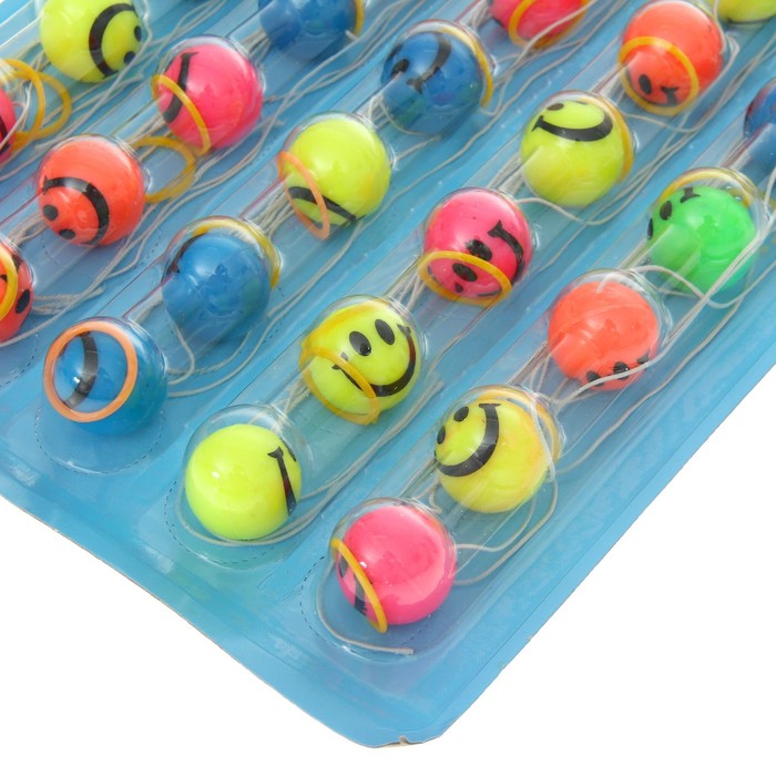Мяч каучук "Смайлик" с резинкой на блистере (набор 30 штук) 2,3 см