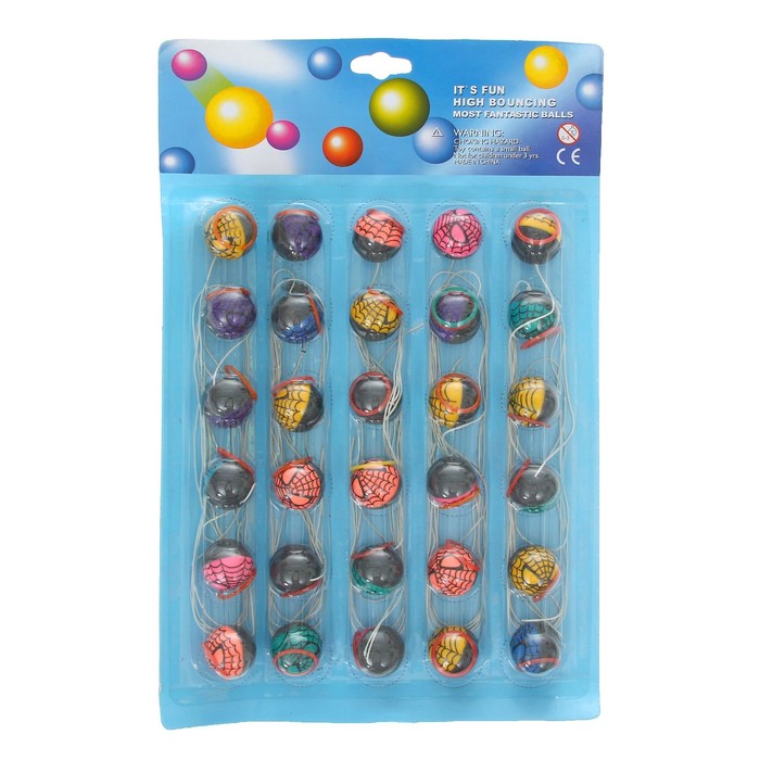 Мяч каучук "Паук" с резинкой на блистере (набор 30 штук) 2,3 см ― игрушка, которая так и норовит ускакать от своего владельца, и именно из-за этого свойства пользуется такой популярностью.