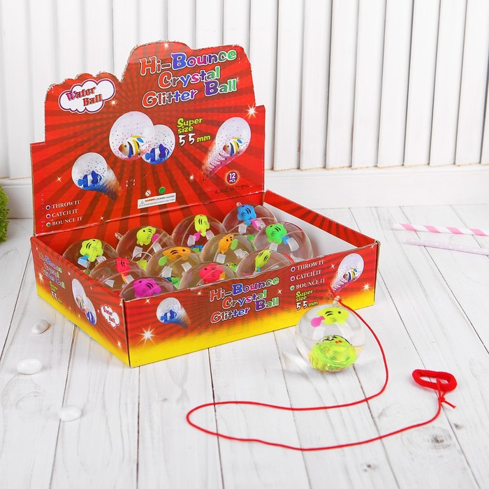 Мяч световой "Рыбка" с водой на резинке 5,5 см, цвета МИКС