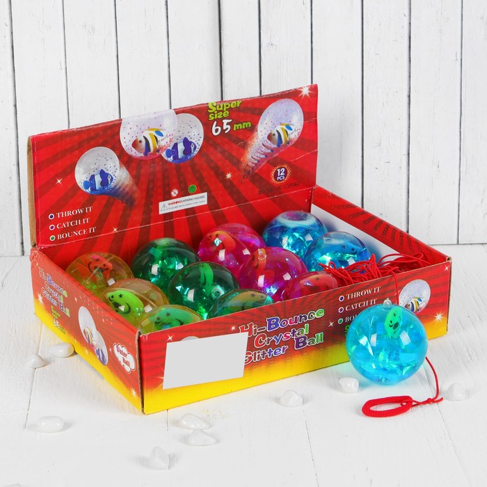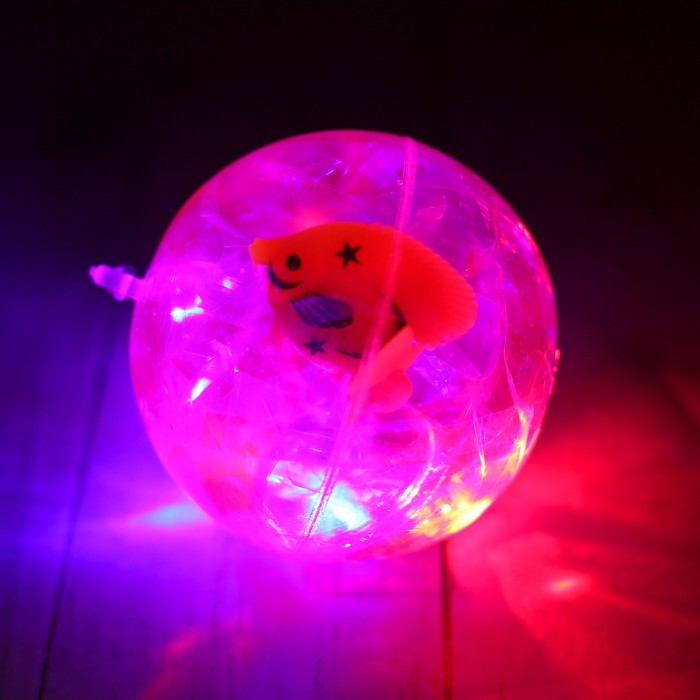 Мяч световой "Рыбка" с водой на резинке 6,5 см, цвета МИКС