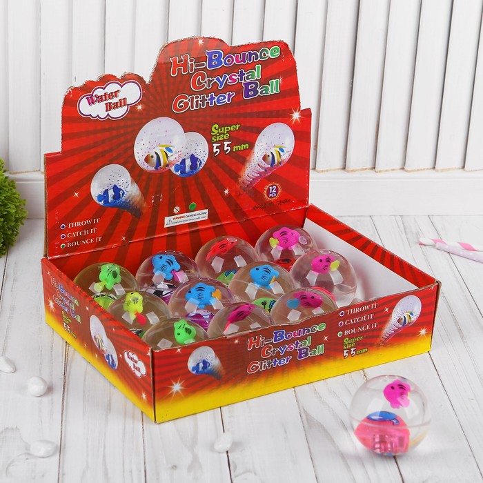 Мяч световой "Рыбка с звездами" с водой 5,5 см, цвета МИКС