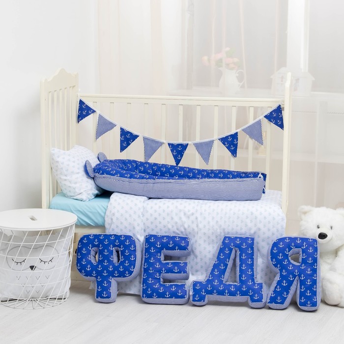 Мягкая буква подушка "Ф" 35х33 см, синий, 100% хлопок, холлофайбер