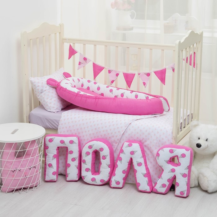 Мягкая буква подушка "Л" 35х35 см, розовый, 100% хлопок, холлофайбер